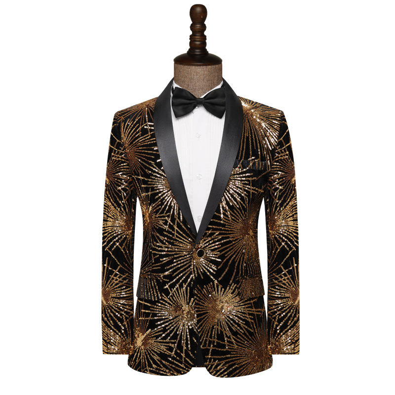 Veste de costume à paillettes dorées pour homme, blazer, chanteur, scène, concert, bar, boîte de nuit, animateur, robe de soirée, costume de fête 2026