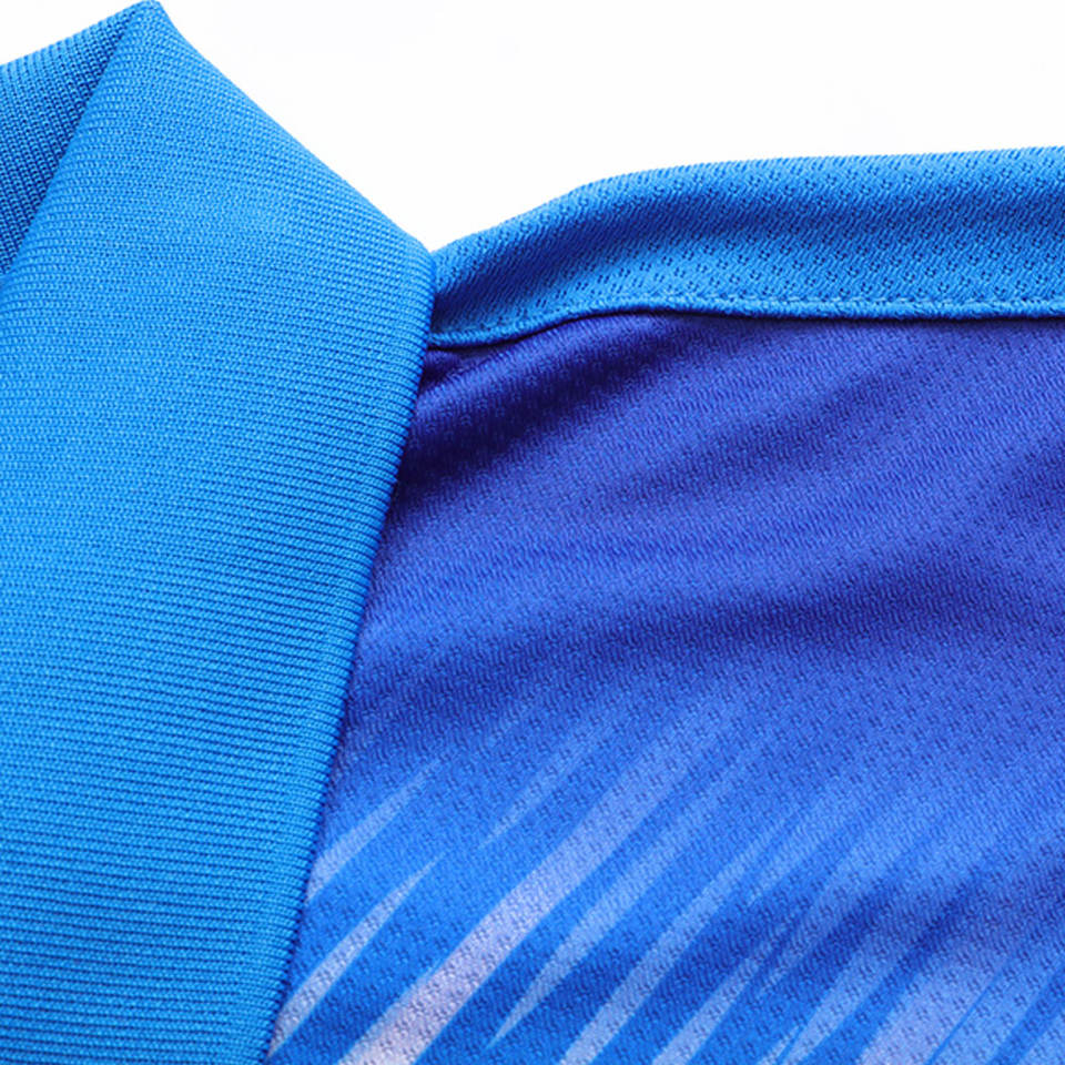 Polo de vitesse personnalisé pour hommes OEM | T-shirt d'entraînement sublimé avec motif bleu et blanc | Fabrication d'articles de sport à Sialkot