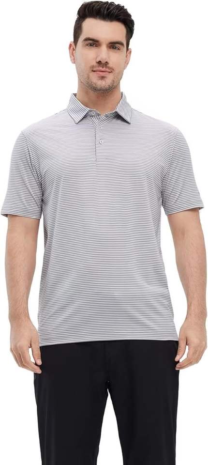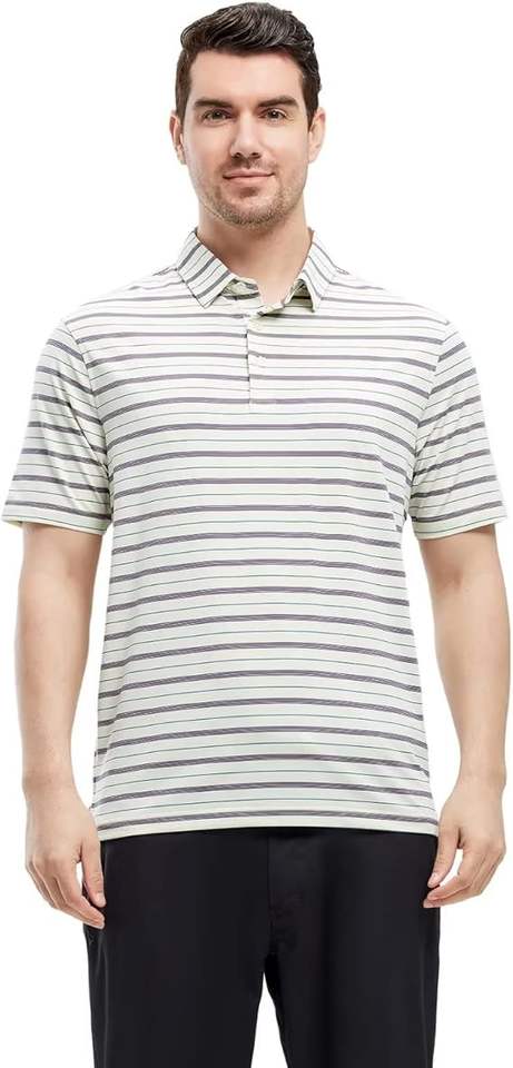 T-shirt de golf à manches courtes pour homme, respirant, anti-humidité, en tissu tricoté, imprimé rayé, coupe classique