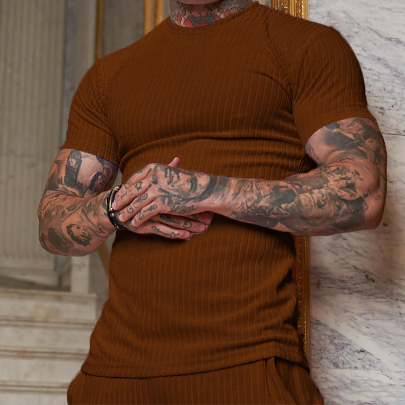 T-shirt à manches courtes en tricot rayé à col rond pour homme, taille 3XL, respirant, vêtements de sport pour homme, musculation, entraînement