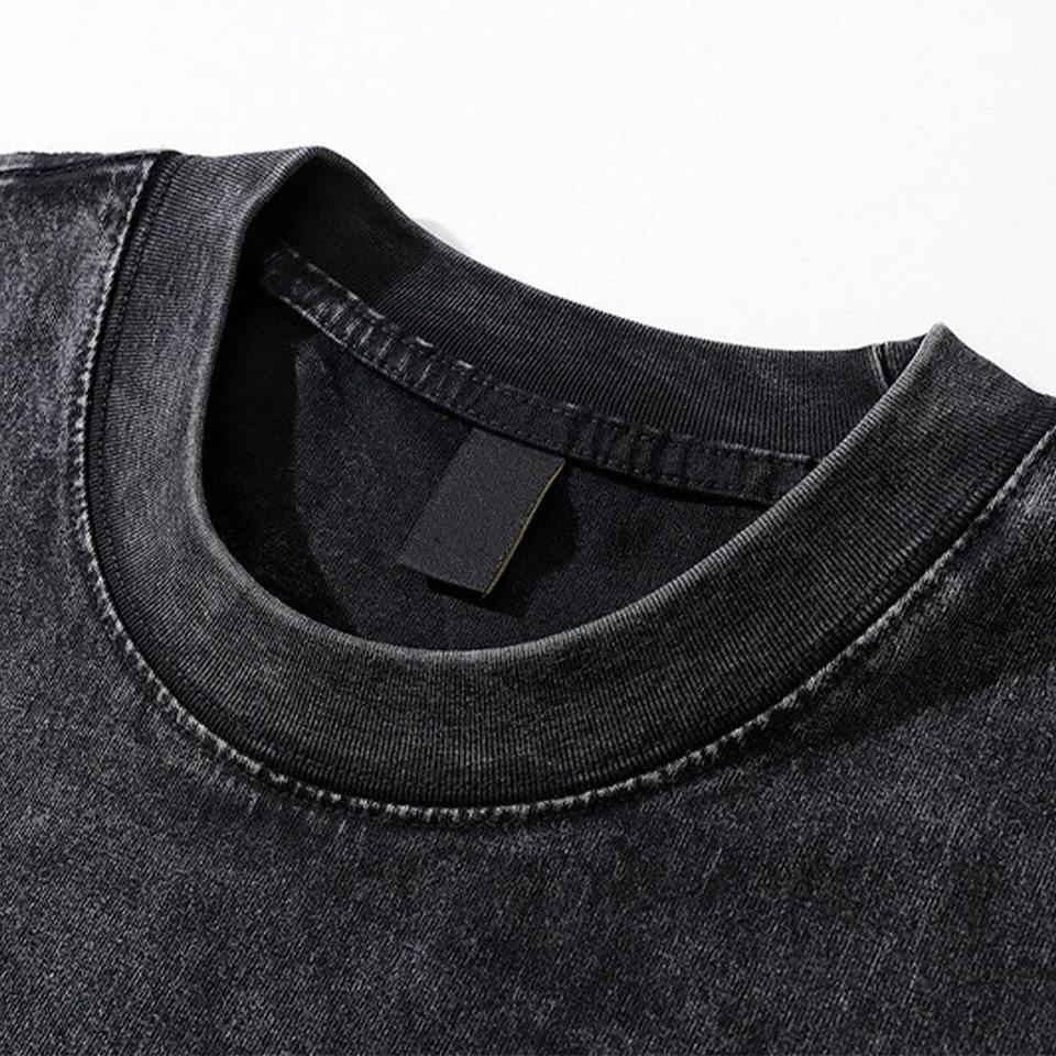 T-shirts en jersey respirant pour hommes, grandes tailles, imprimé délavé à l'acide, style streetwear vintage, coupe oversize, col rond, tricoté, effet vieilli, coupe carrée
