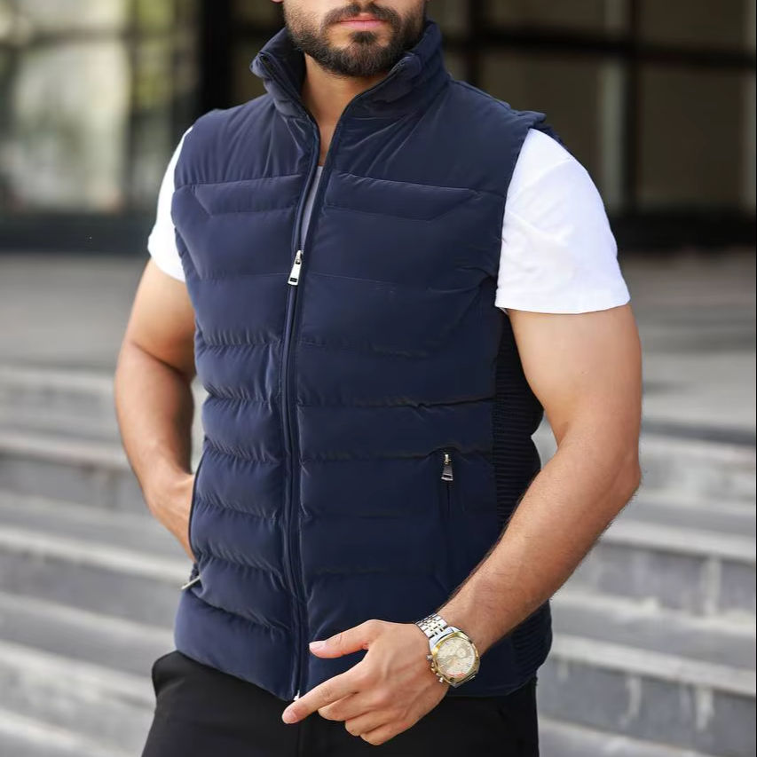 Gilet matelassé décontracté grande taille pour hommes, confortable et élégant, avec rembourrage en nylon et col à capuche pour la saison hivernale