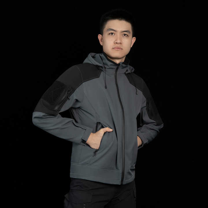 Men's Plus Size Casual Sport Windbreaker Grey Waterproof Soft Shell Heated Jacket Hood for Outdoor Camping Work Canvas Fabric