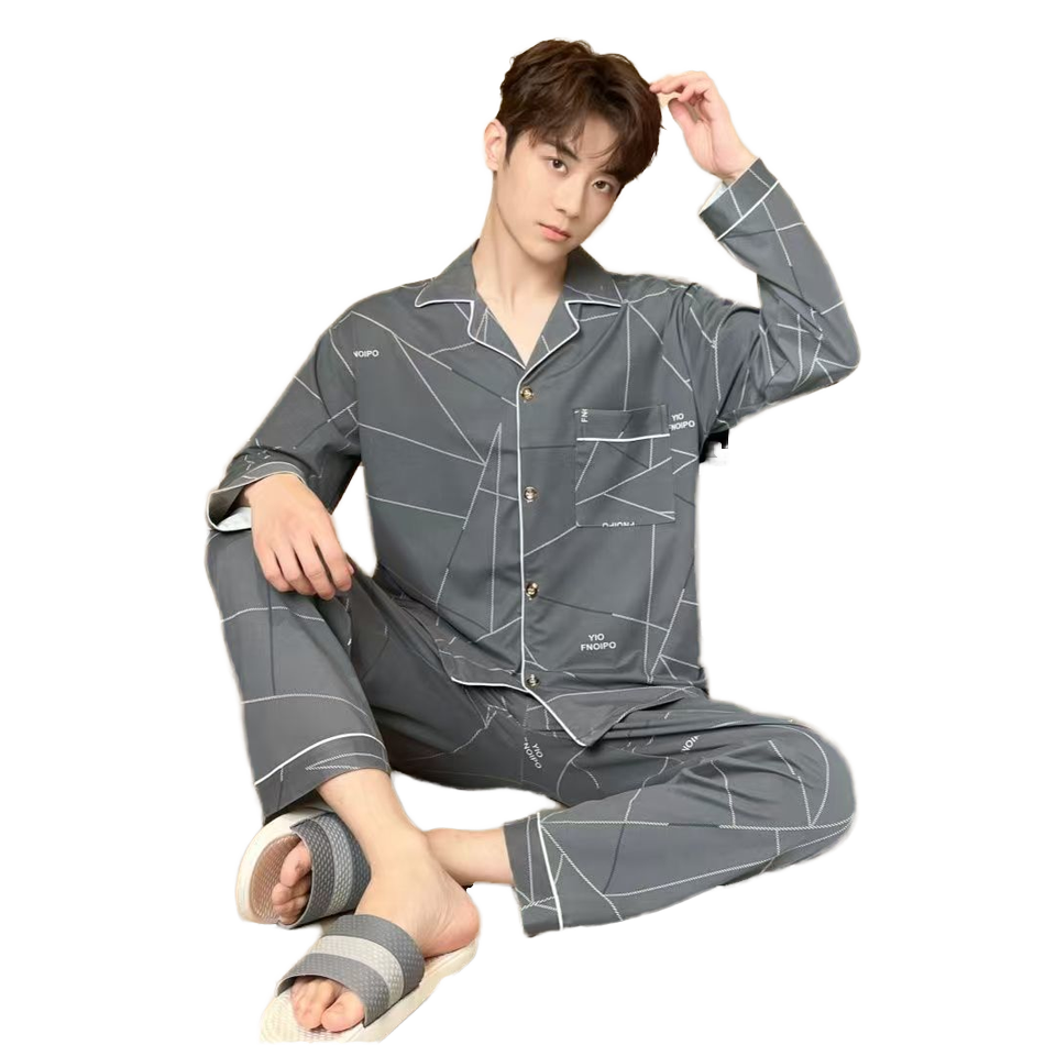 Ensemble de vêtements de détente pour homme, grande taille, imprimé, doux, pantalon à manches longues et cardigan à revers, vêtements de nuit