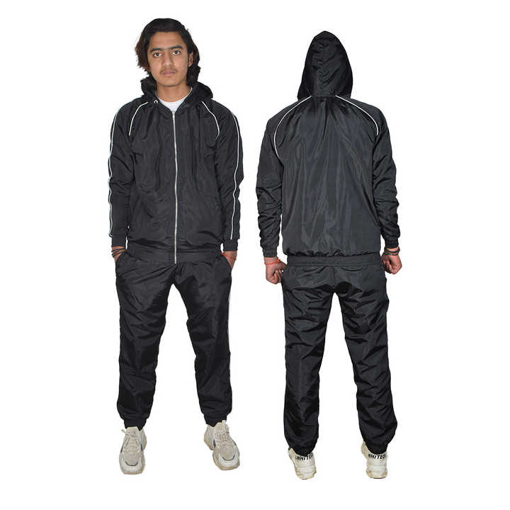 Ensemble sweat à capuche zippé et pantalon pour homme grande taille en polyester/nylon, taille élastique réfléchissante, streetwear personnalisé 2 pièces