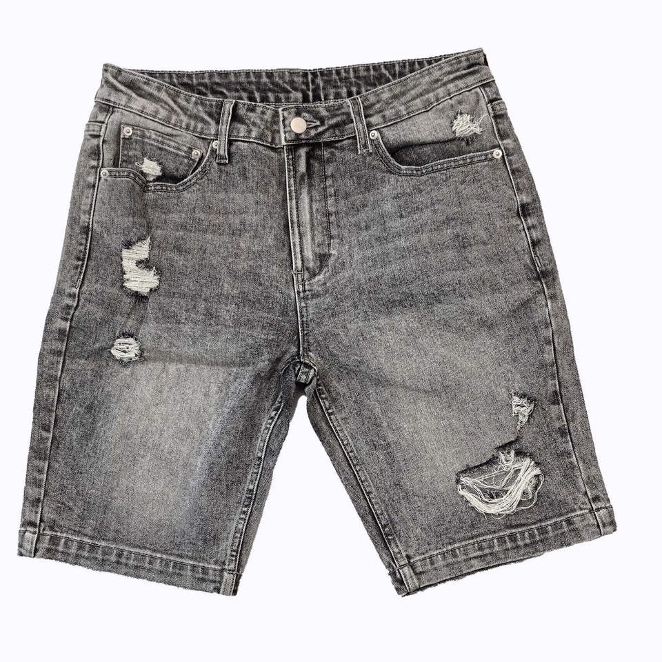 Shorts en jean vintage brodés déchirés pour homme, taille plus, coupe droite, style Y2K, streetwear d'été, 100% coton, délavage à la pierre