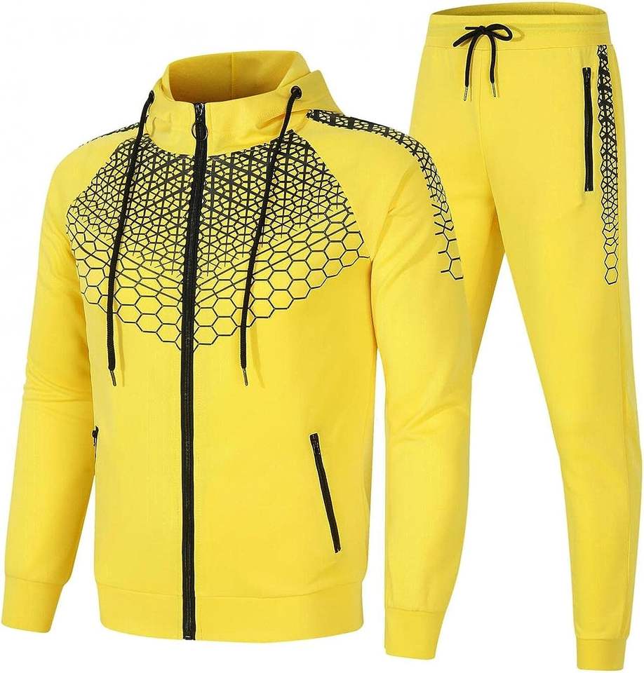 Ensemble de survêtements d'hiver respirants grande taille pour hommes en jaune motif nid d'abeille avec col à capuche Costumes de survêtement du Pakistan