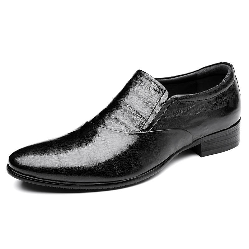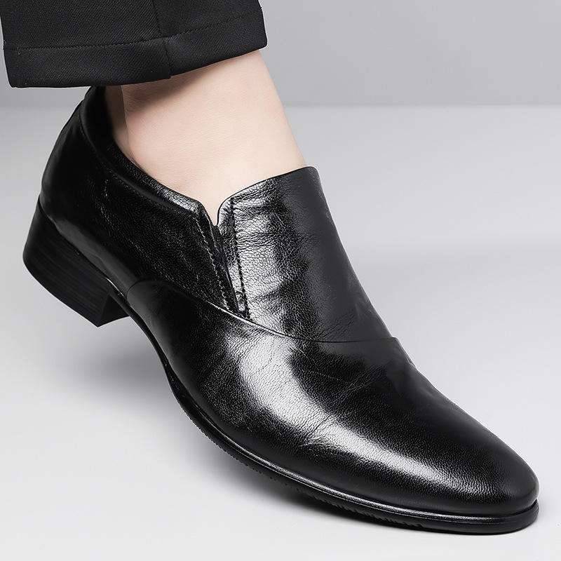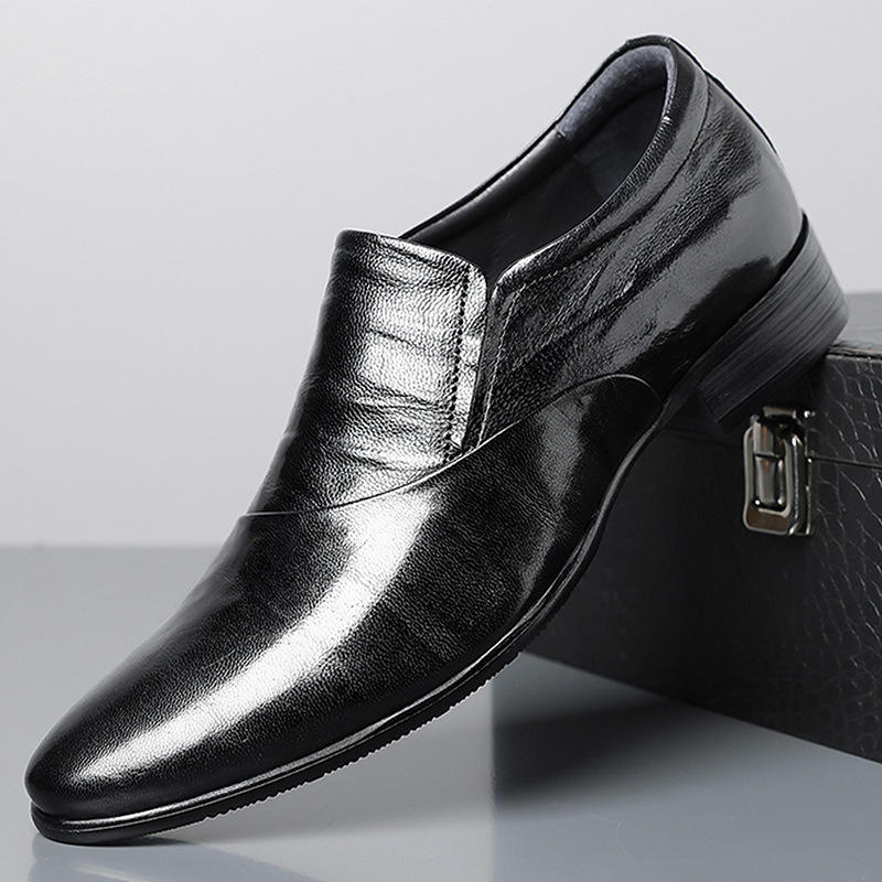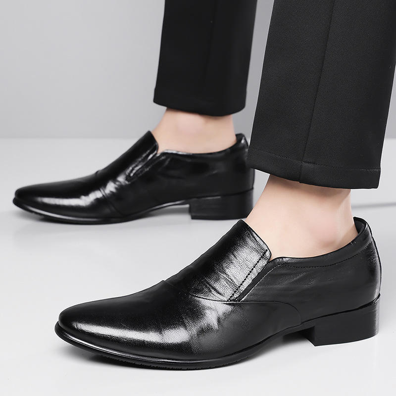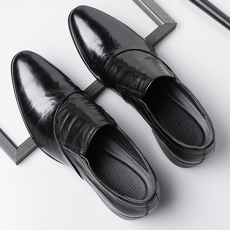 Chaussures habillées en cuir noires à bout pointu et talon bas pour hommes, idéales pour le bureau et les occasions formelles
