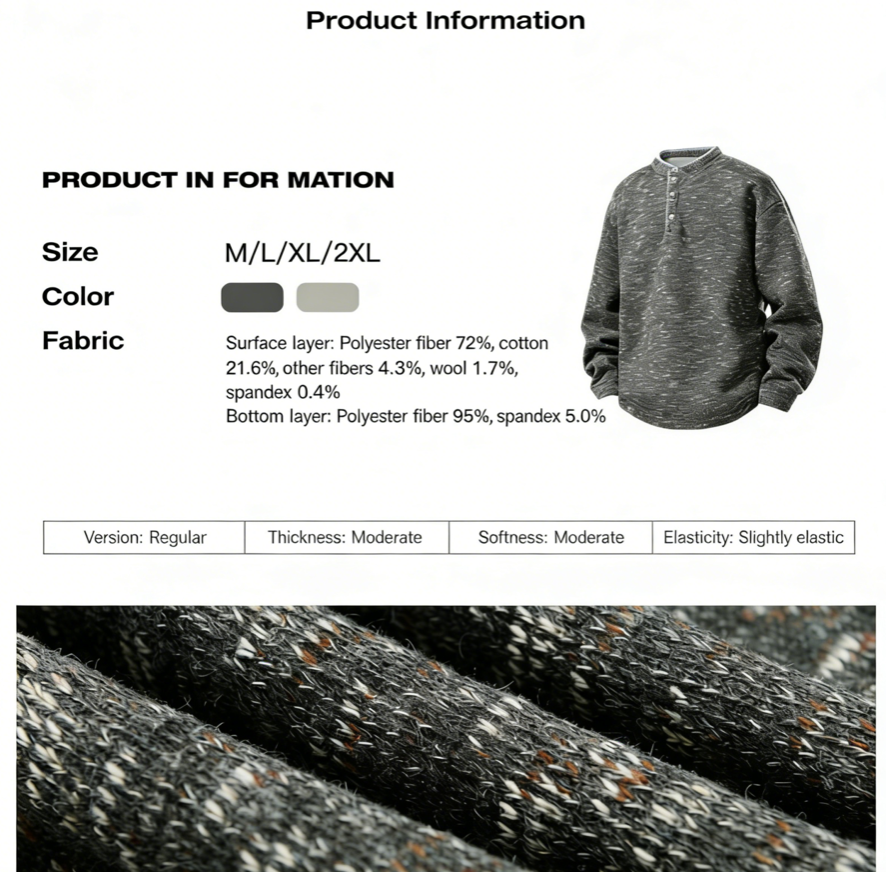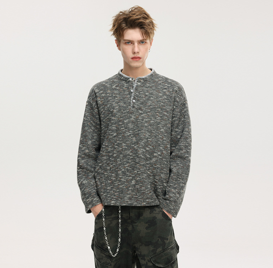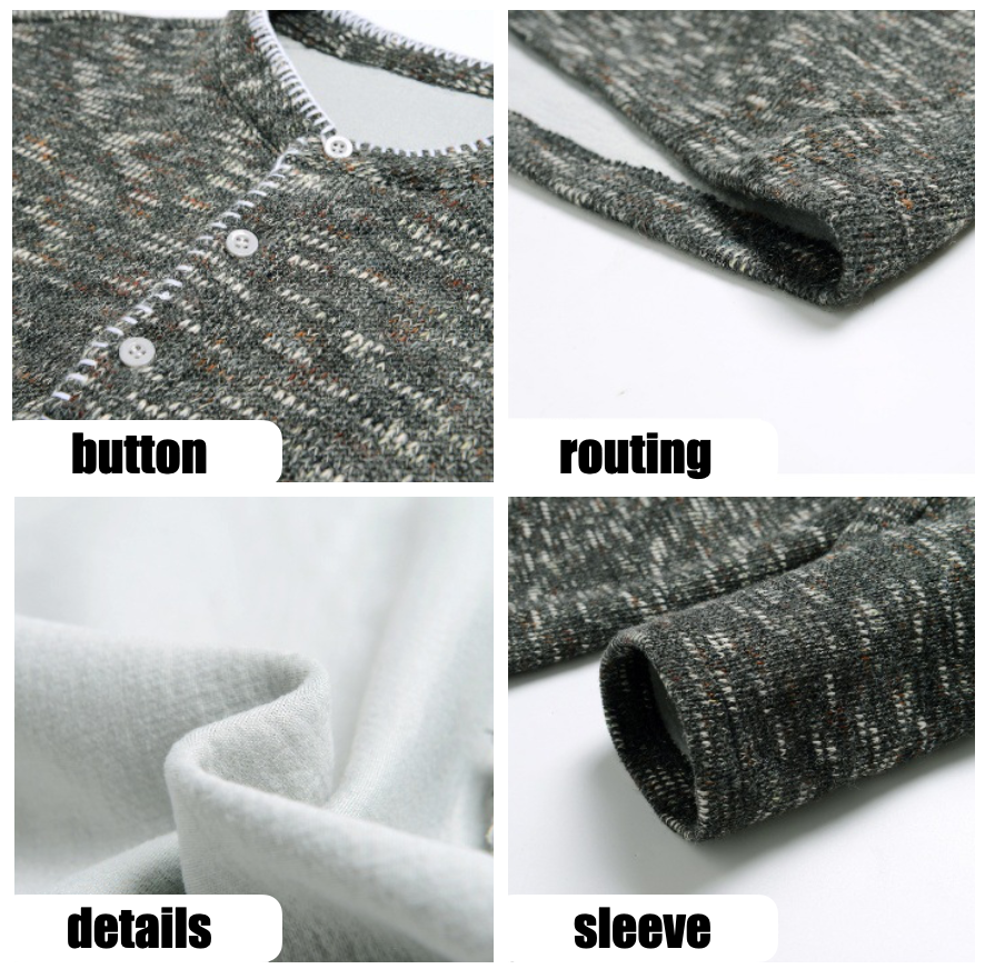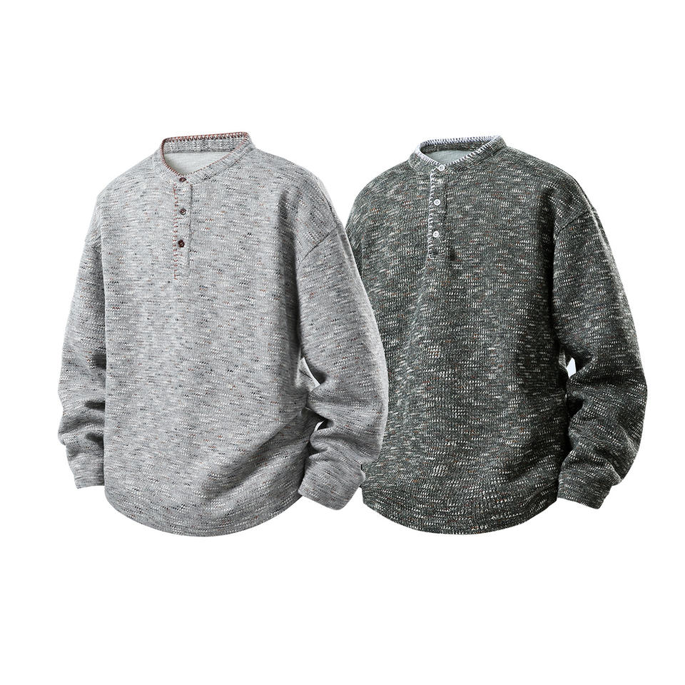 Haut en tricot Henley pour homme en mélange de polyester et de coton ---- Chemise classique unie à boutons, style rétro décontracté pour le trajet quotidien et la vie de tous les jours
