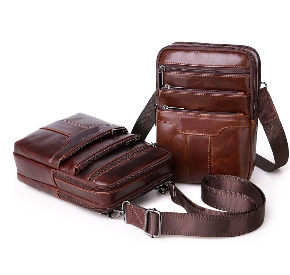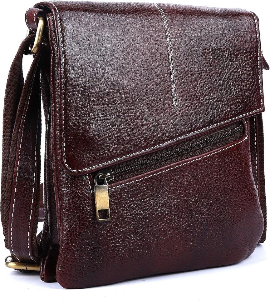 Men's Premium Quality Cowhide Vintage Messenger Bag Genuine Leather Shoulder Crossbody Bag Zipper Closure Simple Classy Style