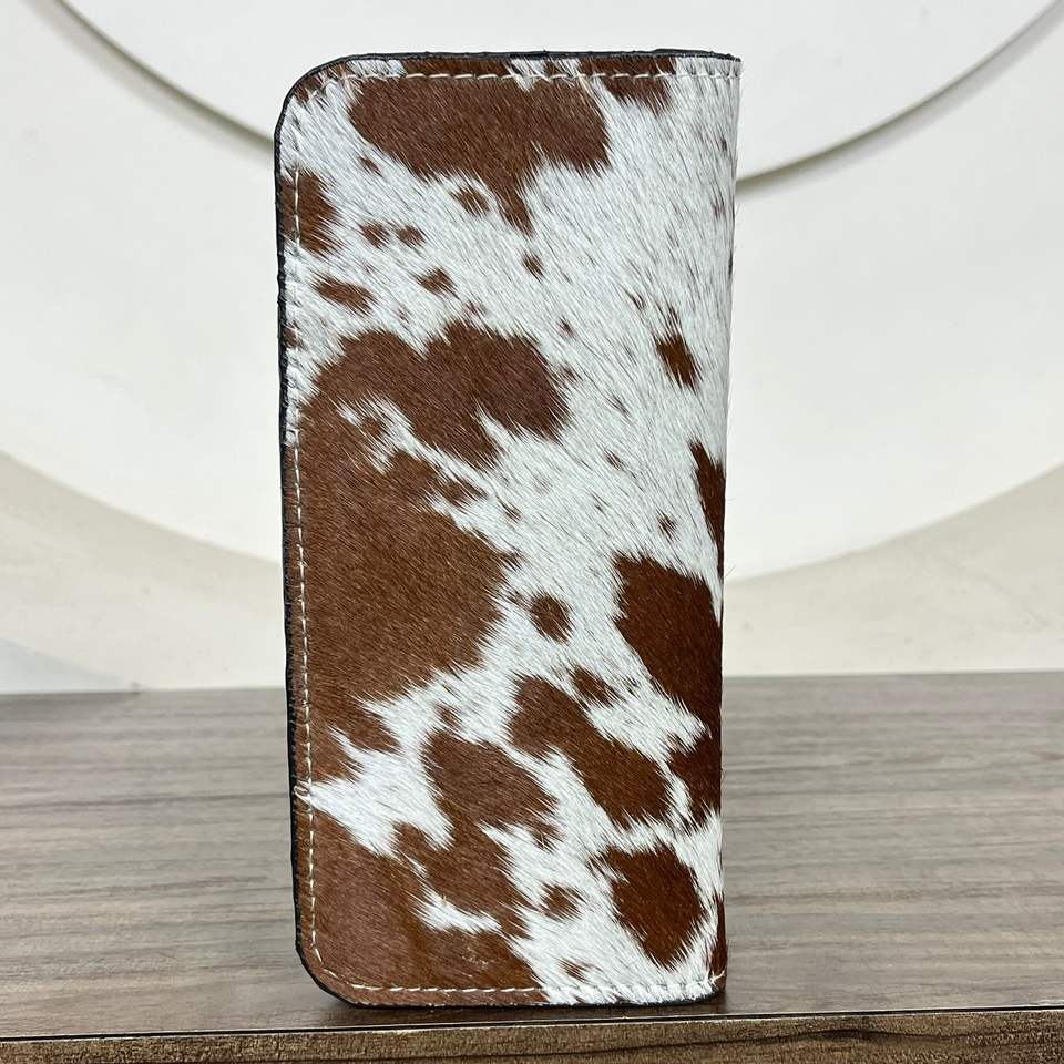 Portefeuille long à deux volets en cuir de vachette véritable
