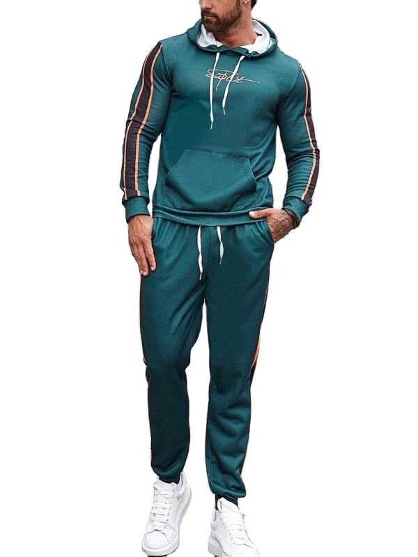 Survêtement de sport d'hiver pour homme de qualité supérieure en deux pièces, en molleton technique 100% coton, respirant et léger pour l'entraînement