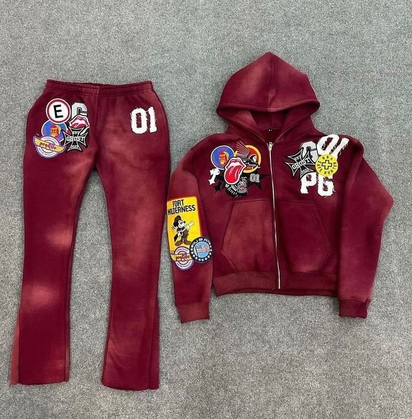 Survêtements de jogging décontractés pour hommes, imprimés avec des strass, à capuche, 2 pièces, avec doublure en polaire et 100% coton biologique