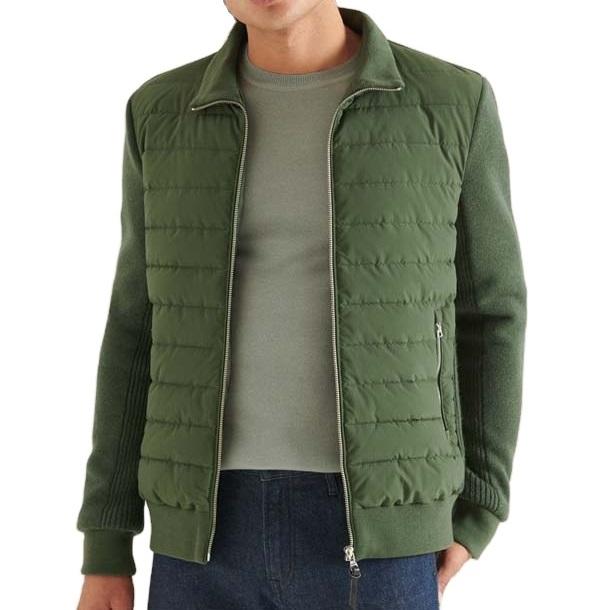 Vestes matelassées pour hommes Col rabattu Ceinture élastique verte Vestes matelassées coupe-vent à la mode Vestes à fermeture éclair