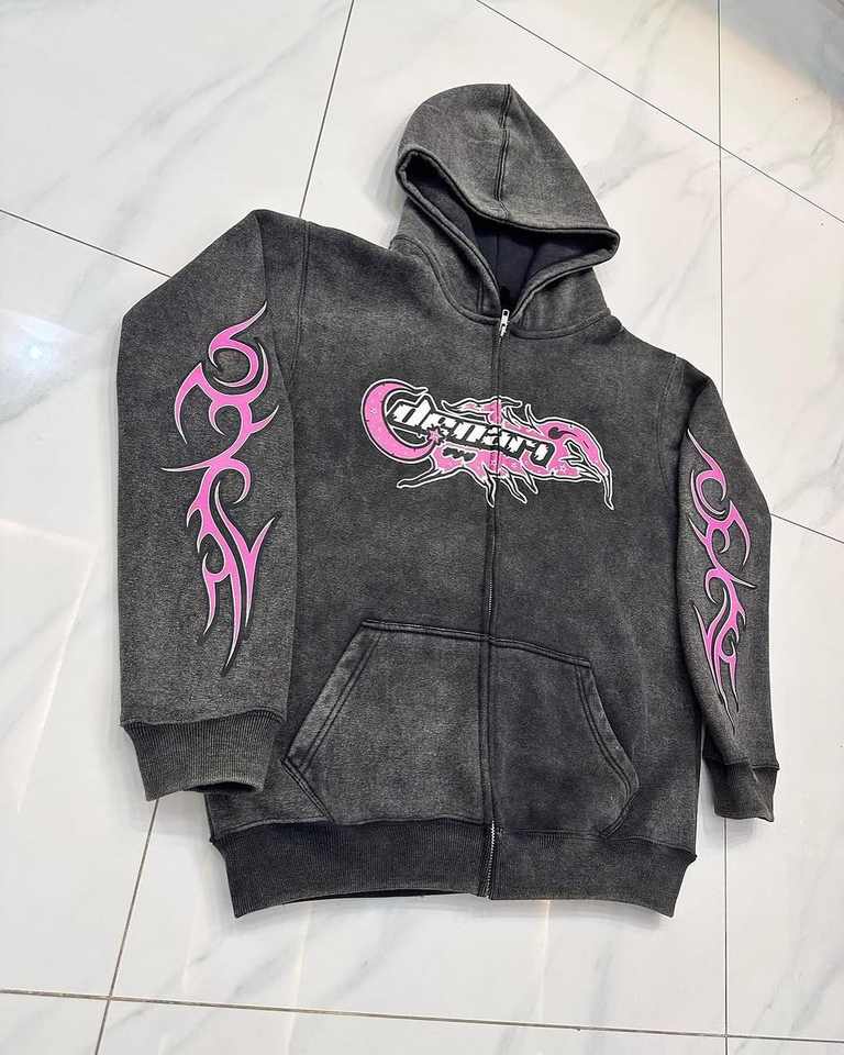 Style:Fashion, Vintage, Gothic, Vacation, Hip Hop, Oversized, STREETWEAR, Bohemian, HIGH STREET, Pullover, zipper-up