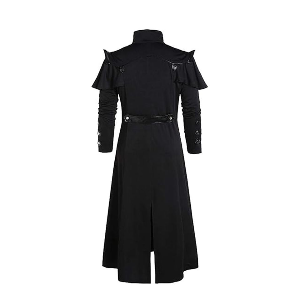 Vestes de moto de style punk pour hommes, vêtements d'extérieur tendance en cuir long et gothique, manteaux trench vintage en PU, teints unis