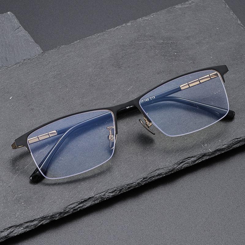 Lunettes à monture optique à demi-jante en titane pur pour hommes, commandez des verres de prescription photochromiques progressifs en ligne