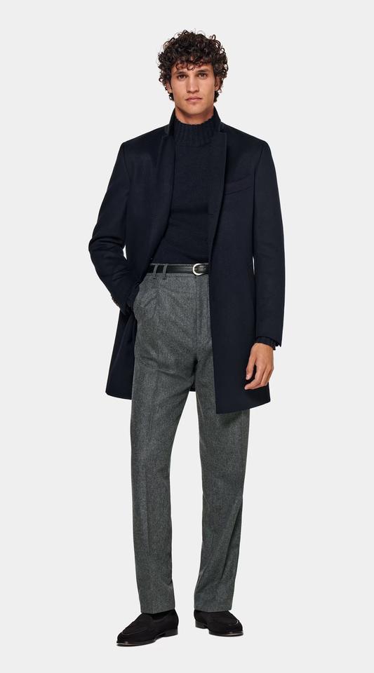 Elegant Men's Pure Wool Long Overcoat Cozy Elegant Woolen Coat with Sheep Fur