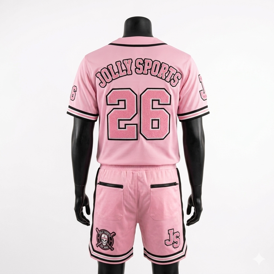 Ensemble short de baseball pour homme en polyester respirant, maille filetée, avec panneaux contrastants et logo personnalisé par sublimation.