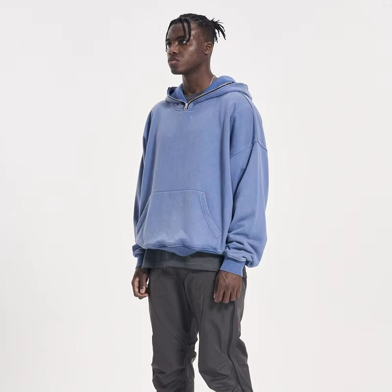 Sweat à capuche oversize à fermeture éclair sur le devant pour homme, streetwear, délavé à l'acide, 100% coton, épais, respirant, hiver, personnalisation complète