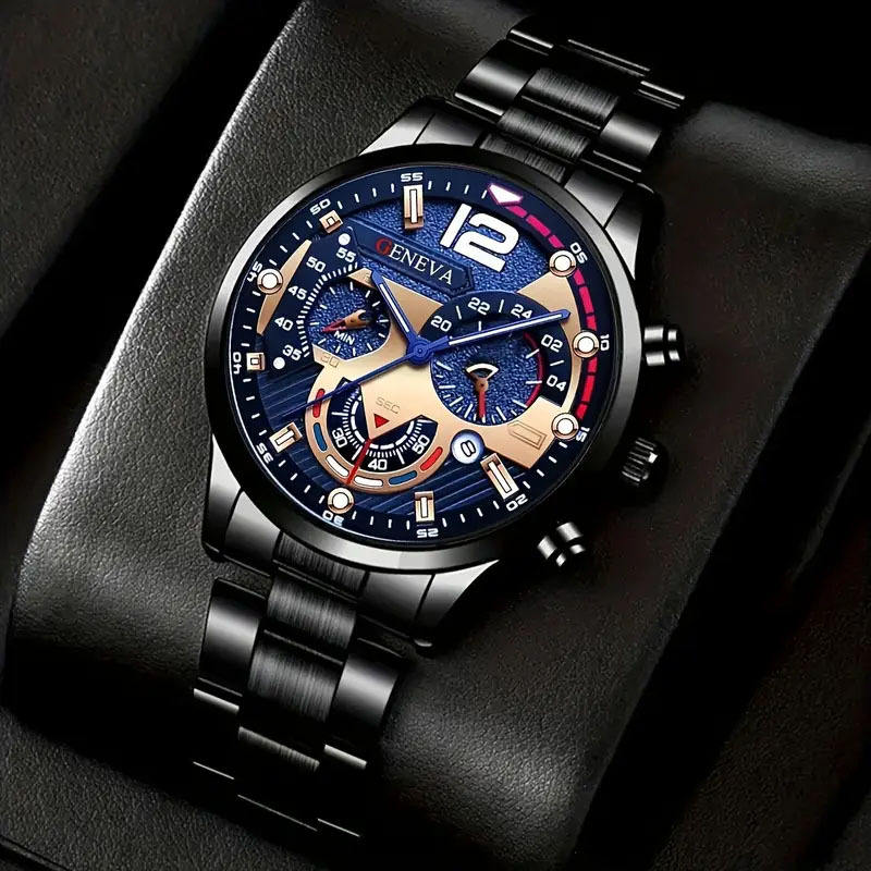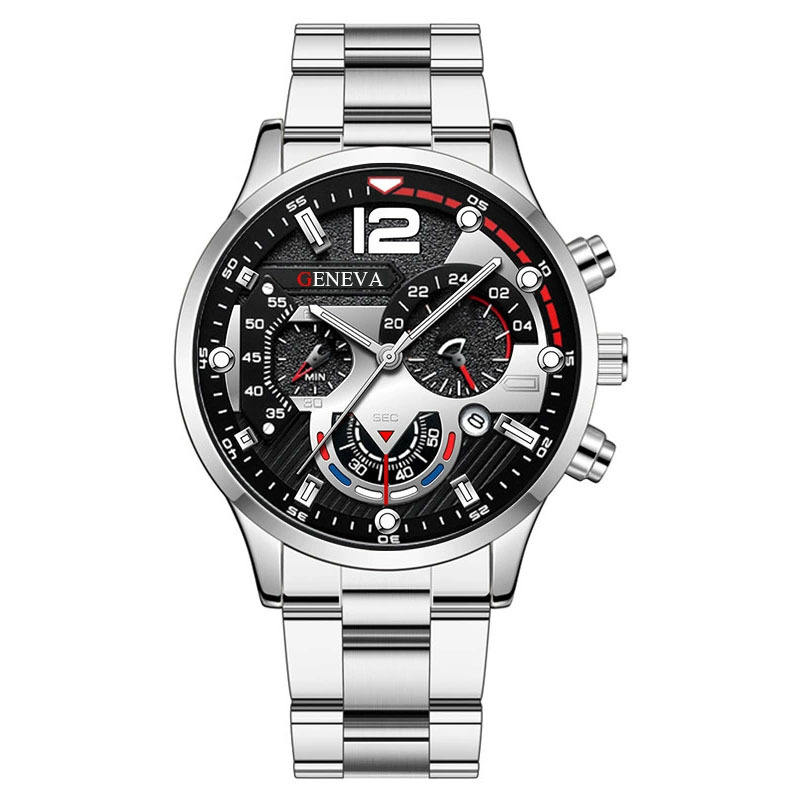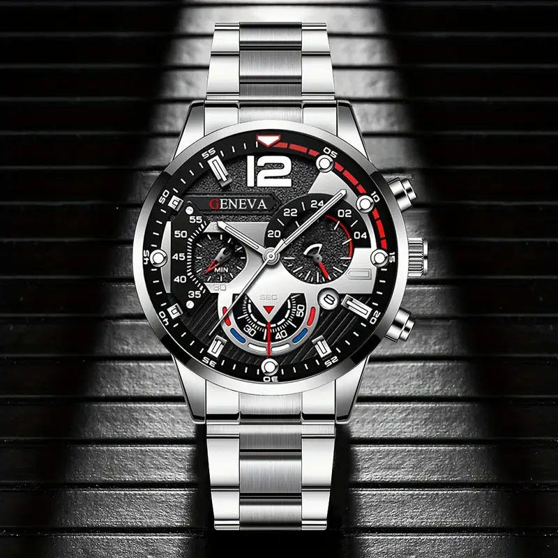 Montre à quartz pour homme avec aiguilles lumineuses, bracelet en acier, cadran calendrier, montre-bracelet sport tendance, best-seller