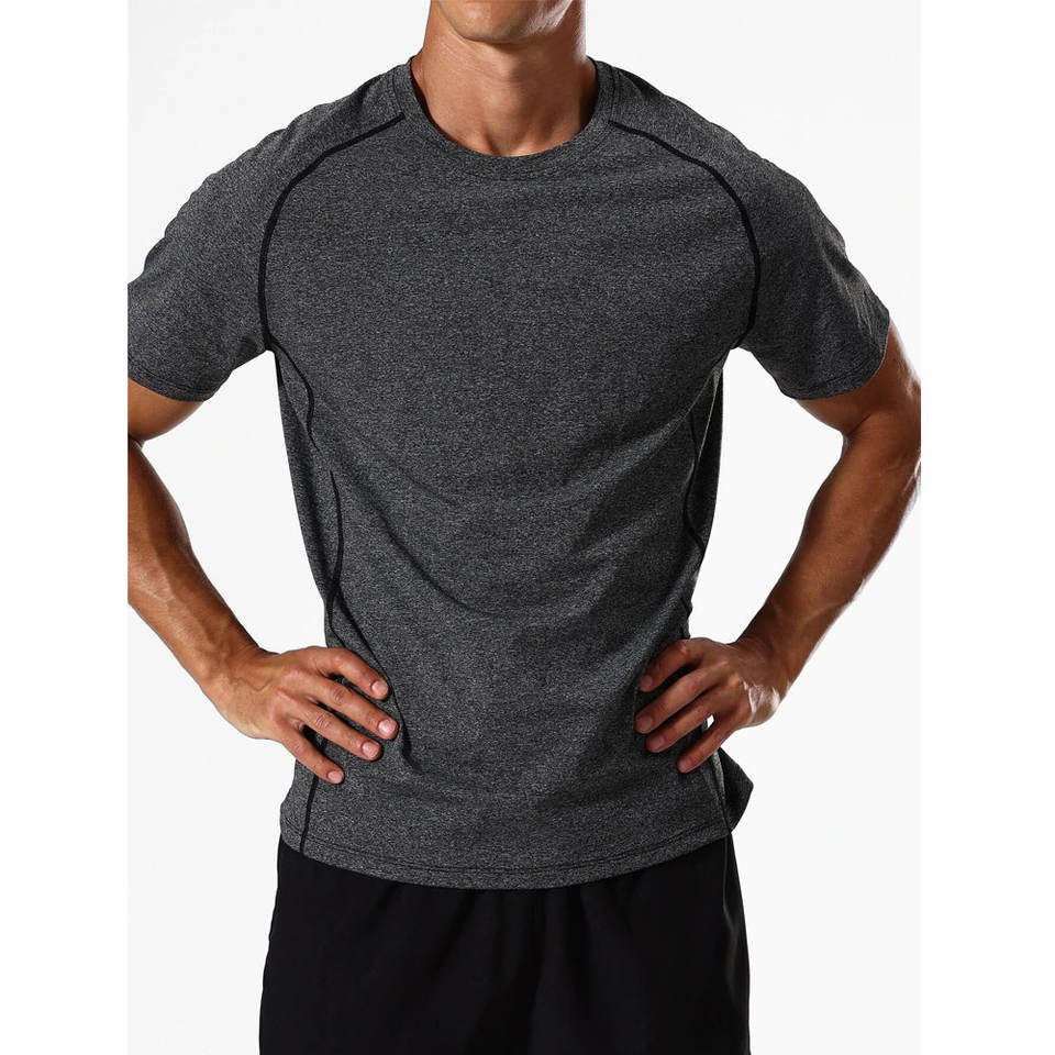 T-shirt de sport pour homme à séchage rapide, col rond, pour la course à pied, l'entraînement, le fitness, haut de compression athlétique avec tissu tricoté respirant