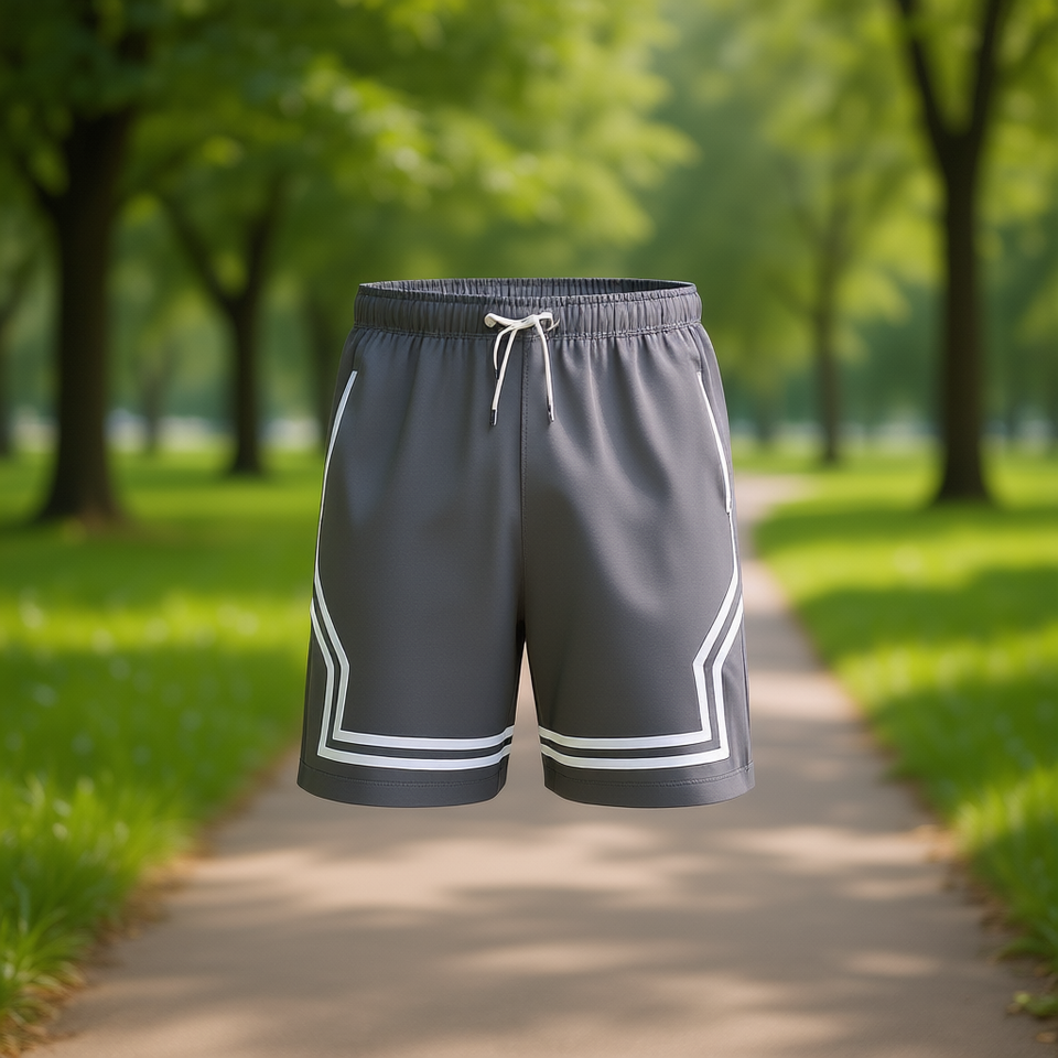 Shorts pour hommes en polyester à séchage rapide avec bande latérale, cordon de serrage, taille mi-haute, style décontracté, gris