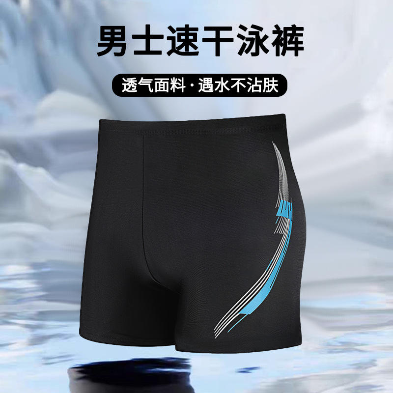Maillot de bain à séchage rapide pour hommes, noir avec rayures bleu-vert, design sportif pour les activités aquatiques sur la plage, taille adulte