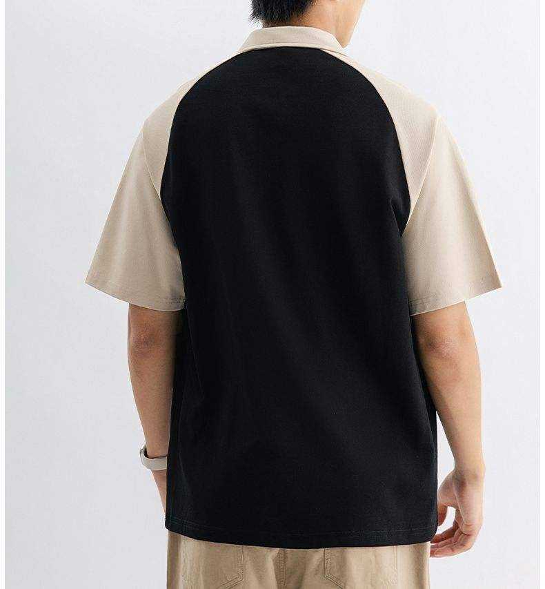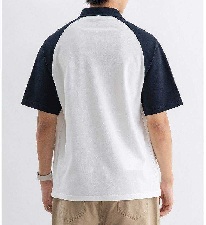 Polo à manches raglan color-block pour homme, col zippé, coupe athlétique 2026, blanc, marine, gris et noir, vêtement décontracté et élégant HD