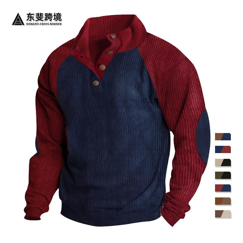 Sweat-shirt décontracté pour homme à col montant et manches raglan, boutonné sur le devant, coupe ample, respirant, à manches longues, pour l'automne et le printemps