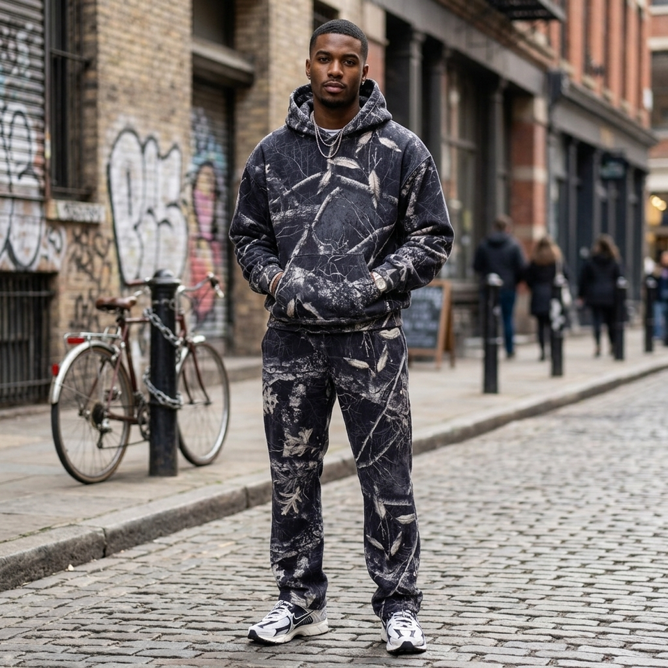 Ensemble de survêtement camouflage Real Tree pour homme – Hoodie et pantalon de jogging coupe ample – Tenue décontractée deux pièces style streetwear – Vente directe usine