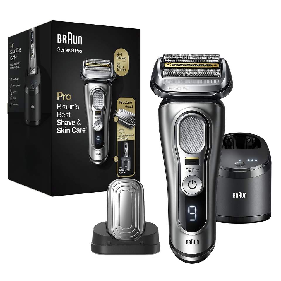 Rasoir électrique rechargeable pour homme, rasoir rotatif à cinq lames, utilisation humide/sèche, station de nettoyage et de charge, étanche IPX7, idéal pour les applications en camping-car