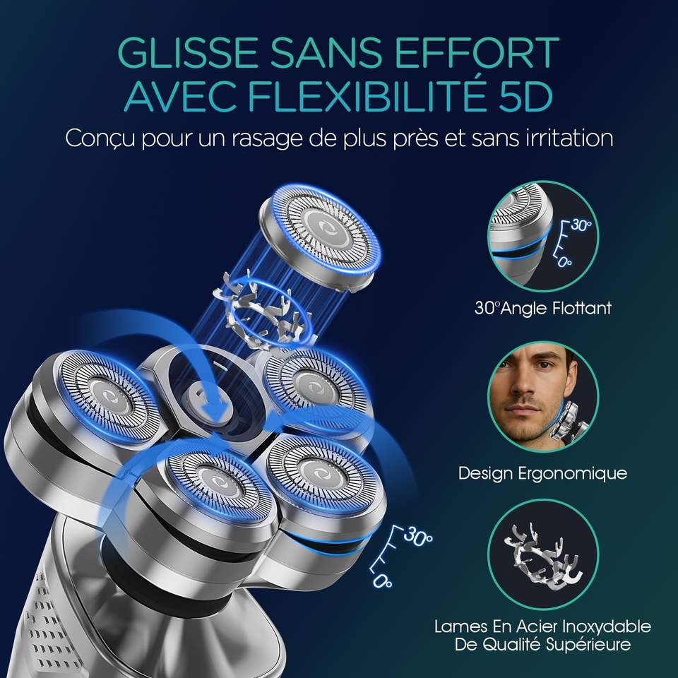 Rasoir électrique rechargeable pour homme avec lames flottantes, écran LED, étanche, rasoir à barbe noir pour le corps, certifié IPX7