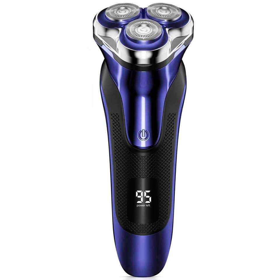 Rasoir électrique rechargeable pour homme, rasoir rotatif à triple lame et tondeuse escamotable, étanche IPX7, rasage humide et sec, bleu