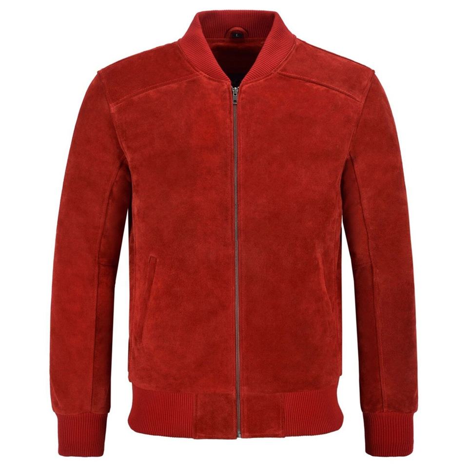 Men's Red Leather Jacket Classic Suede Biker Leather Jacket in Bomber Style