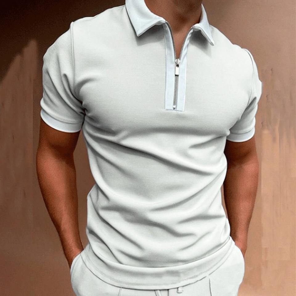 Chemise à manches courtes pour homme, coupe classique, 100% coton, toile, col zippé, pour le golf, l'été, streetwear, séchage rapide