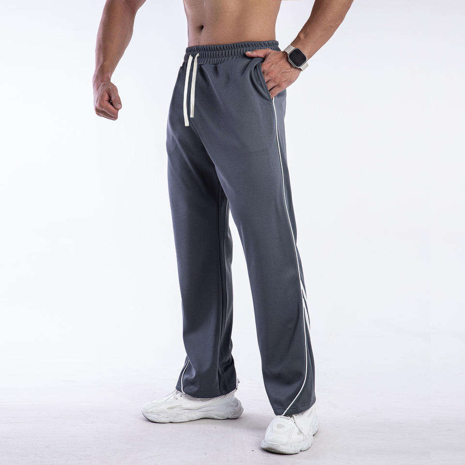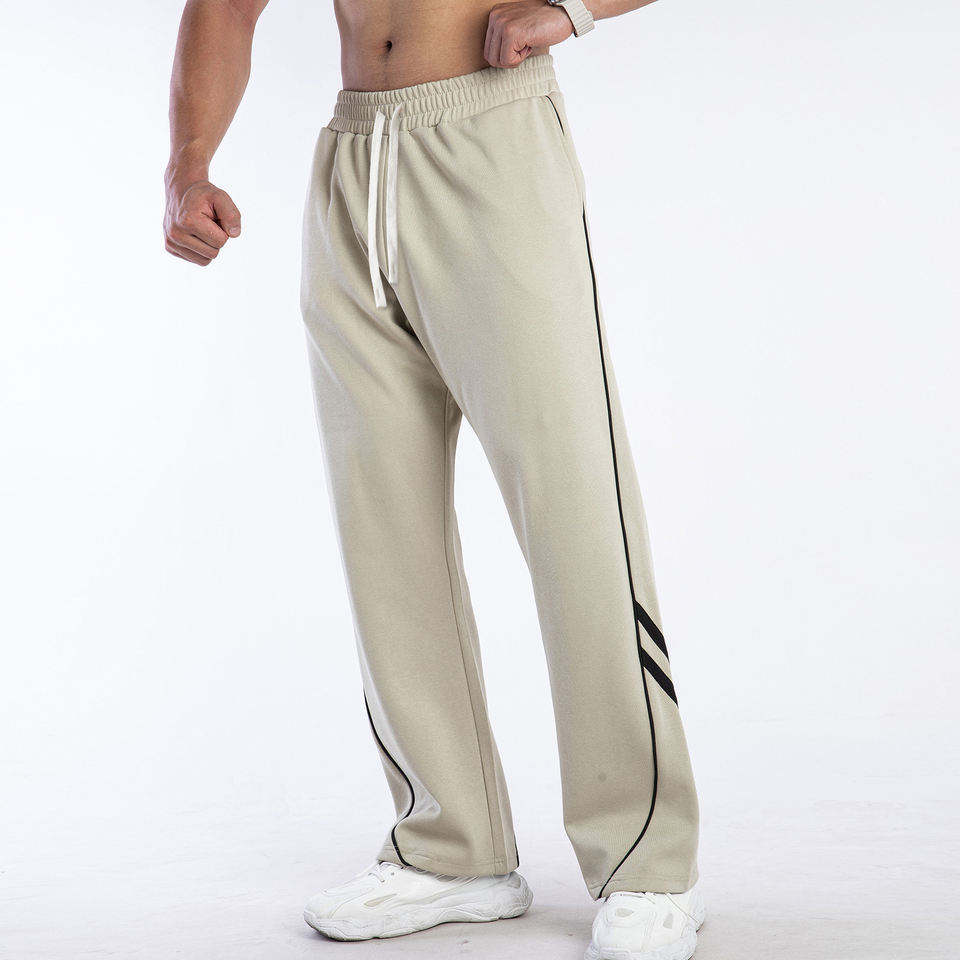 Pantalon de jogging décontracté pour homme, coupe décontractée, jambe droite, style streetwear américain, en molleton épais rayé, avec cordon de serrage, grandes tailles