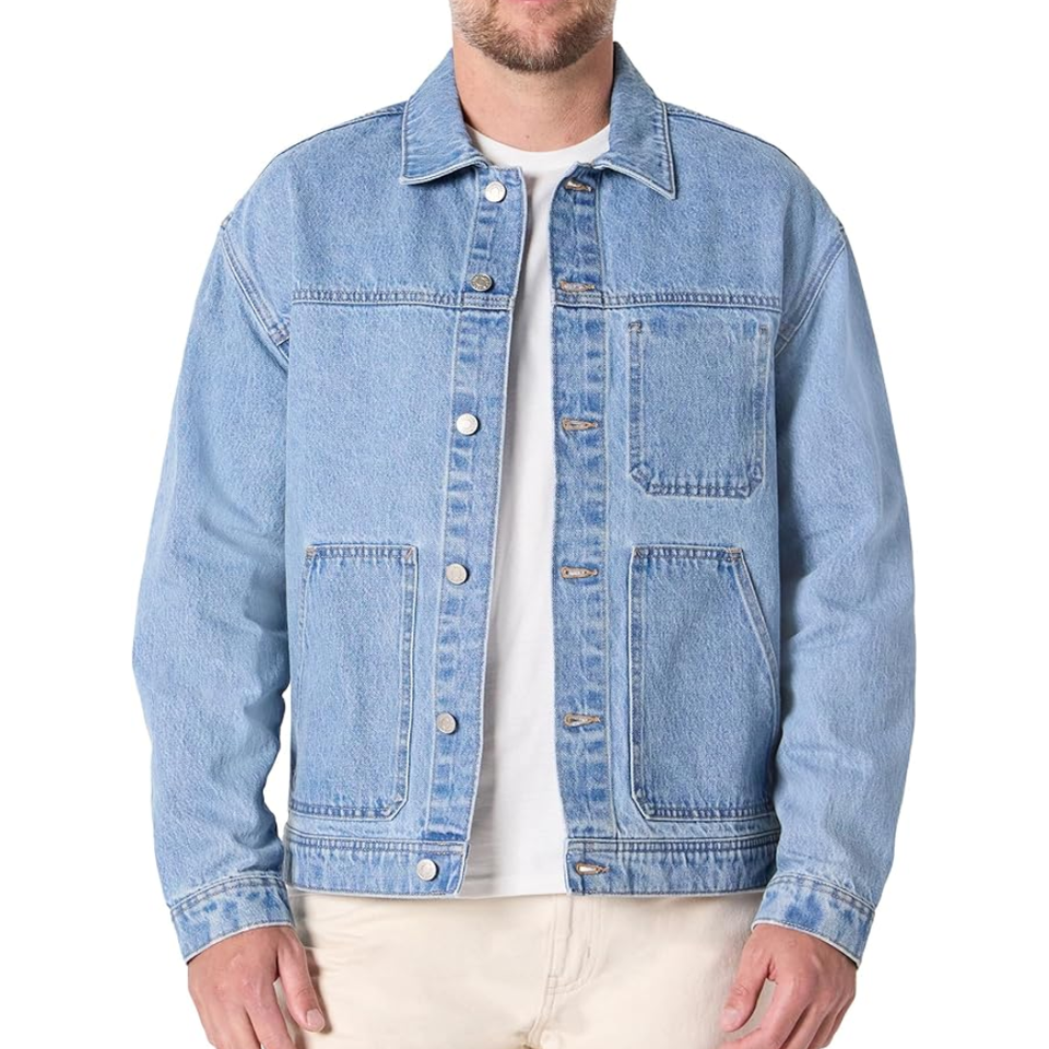 Blouson universitaire décontracté pour homme en jean délavé, style urbain, uni, léger, respirant, écologique, idéal pour la superposition et les voyages