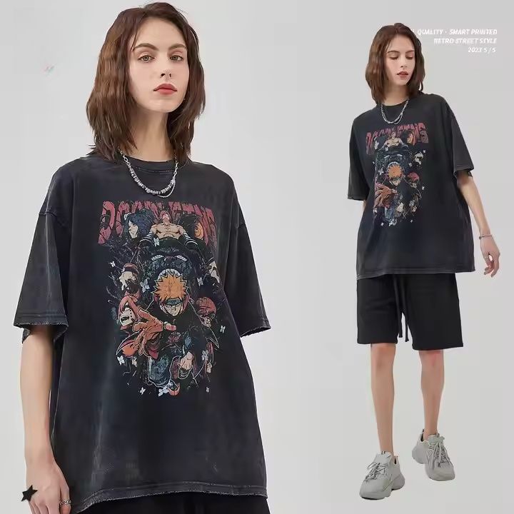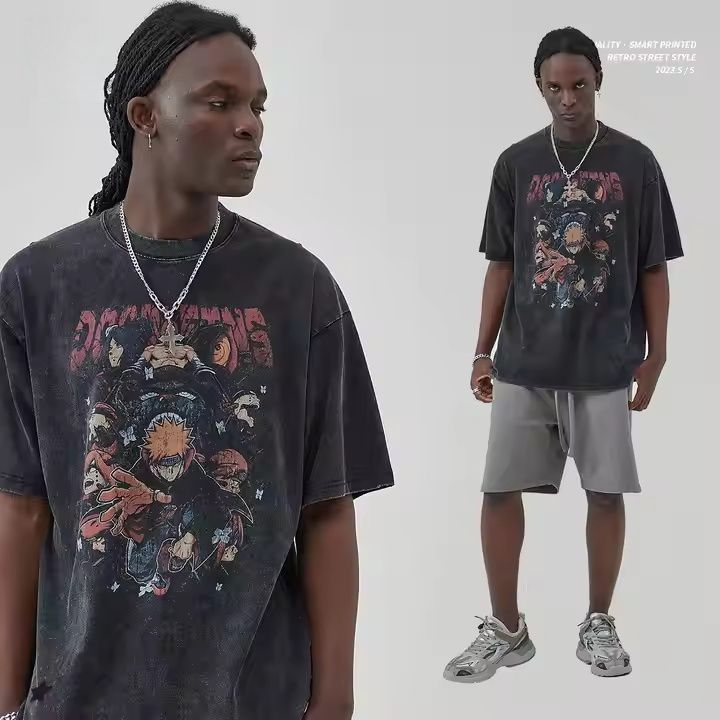 T-Shirt Homme Rétro 100% Coton Manches Courtes Coupe Ample 'Huo Shadow Payne' Imprimé Solide Flocon de Neige Frite Numérique Blanc Jersey