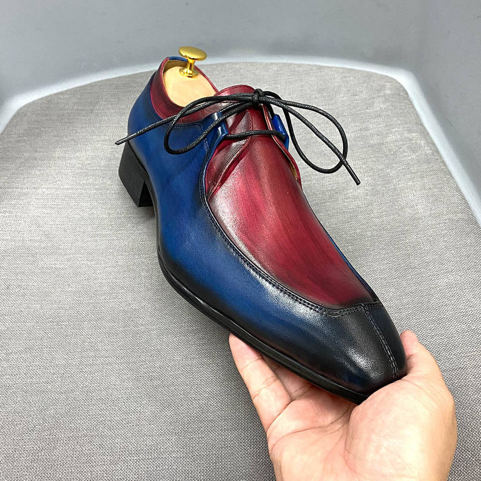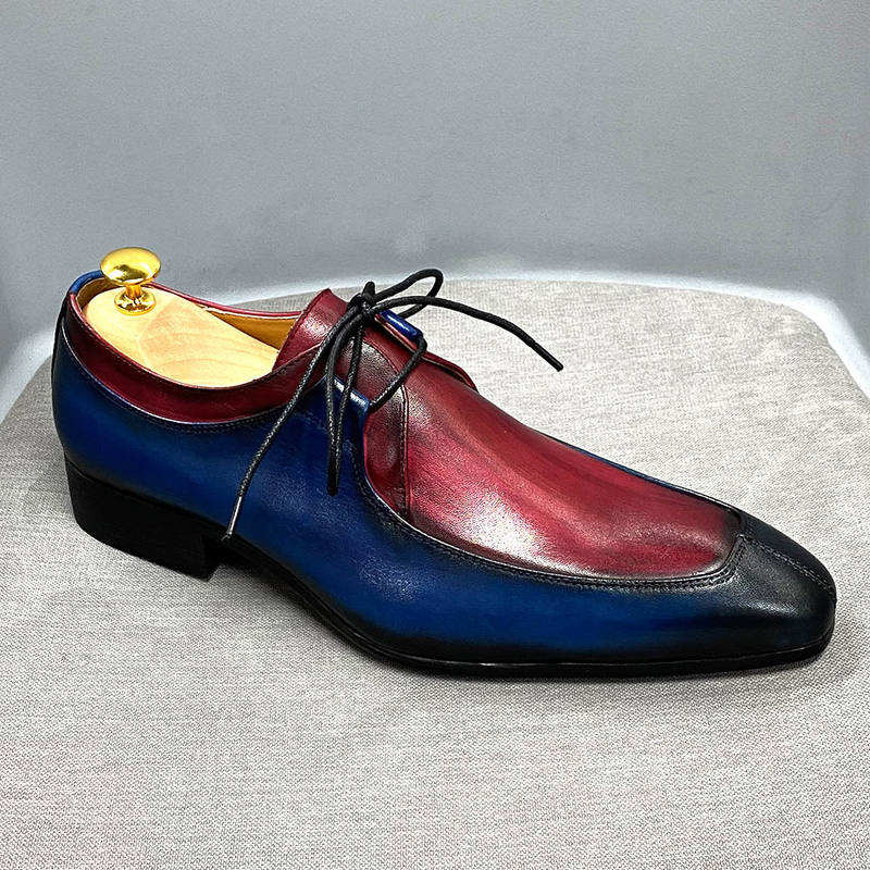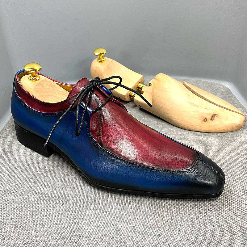 Chaussures Oxford rétro bleu-rouge pour hommes - Cuir de vache véritable, chaussures de bureau professionnelles