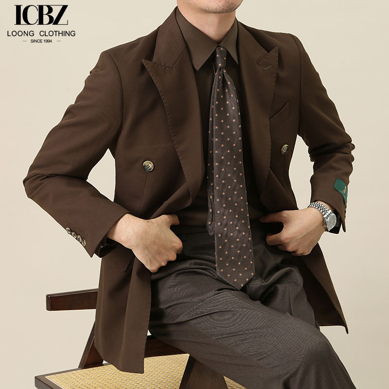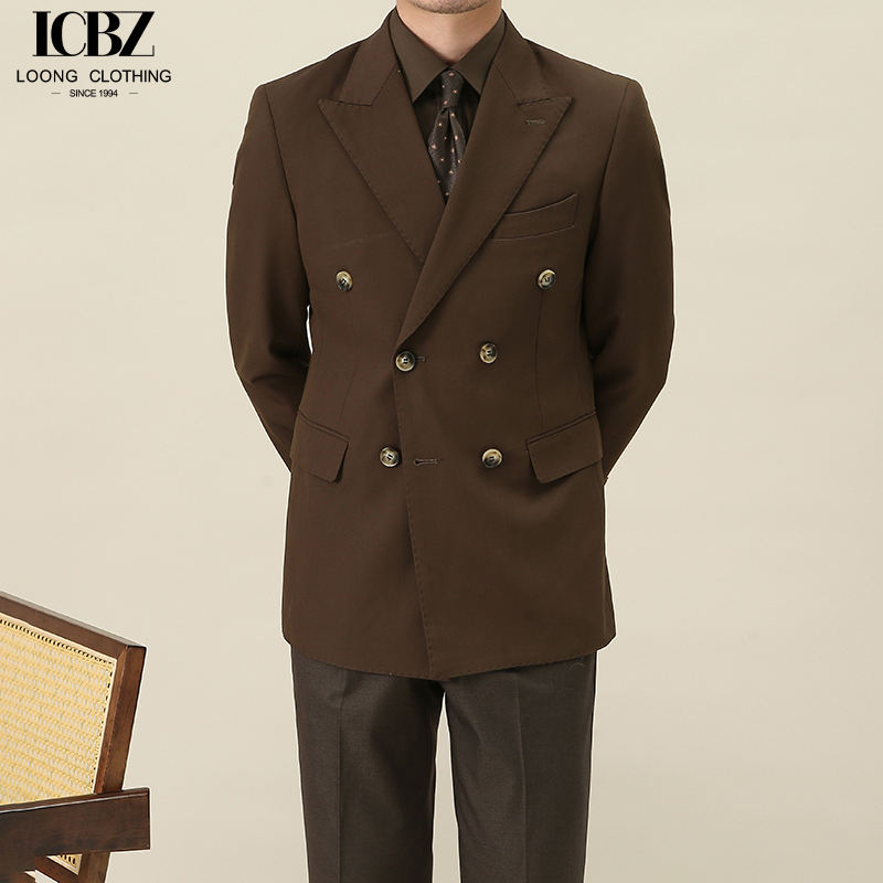 Veste de costume en laine formelle marron rétro pour hommes fermeture à simple boutonnage Gentleman col à revers mince style blazer décontracté
