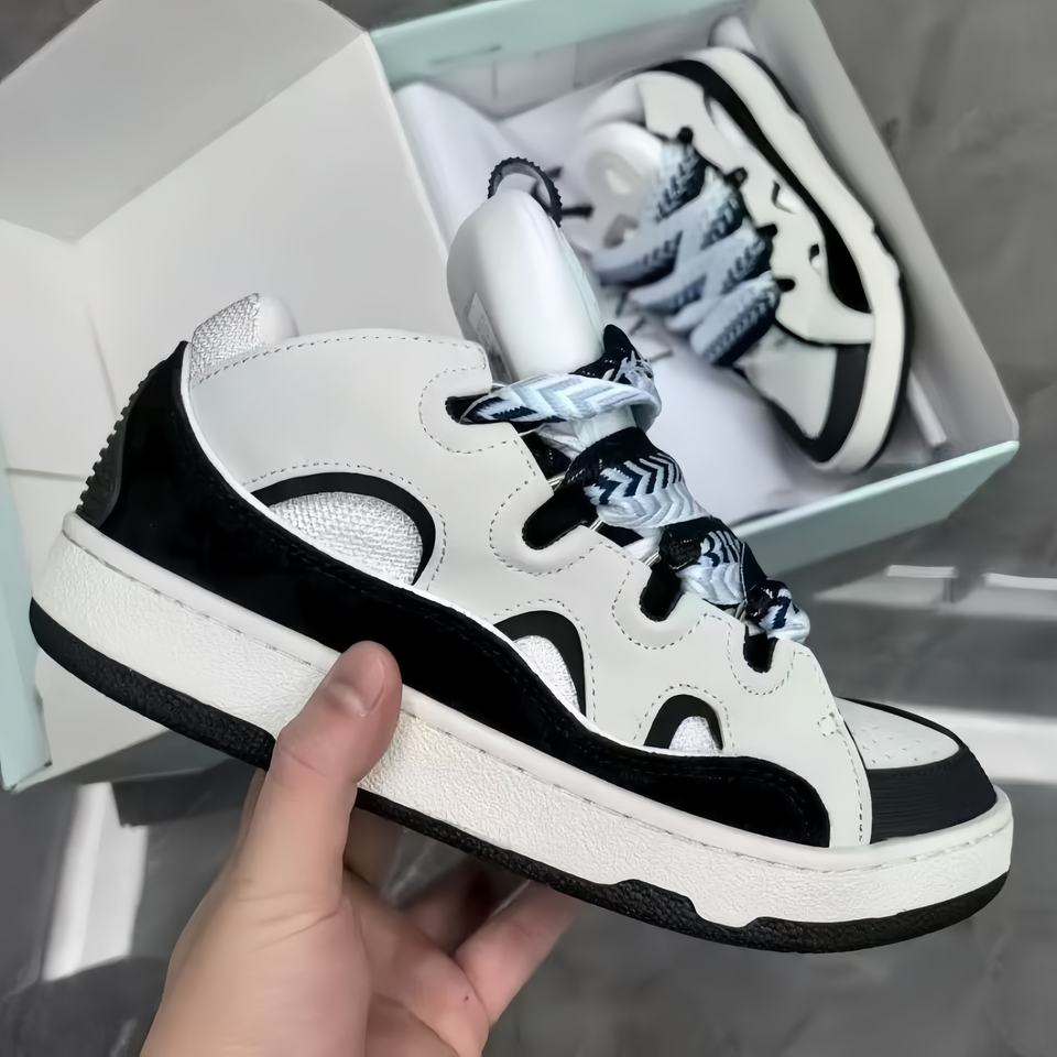 Chaussures décontractées pour hommes LANV en cuir premium, style rétro, multicolores, avec languette assortie, à lacets, pour la marche