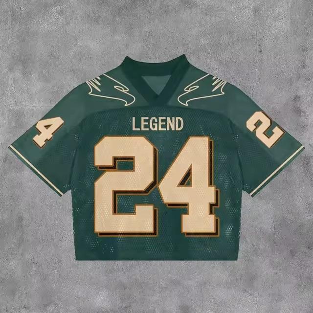 T-shirt unisexe rétro hip-hop à manches courtes, respirant, brodé, streetwear décontracté, avec empiècements, style football américain, grandes tailles