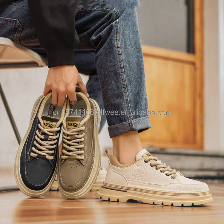 Bottes en cuir microfibre rétro pour hommes, imperméables et antidérapantes à lacets, bottes texanes pour hommes
