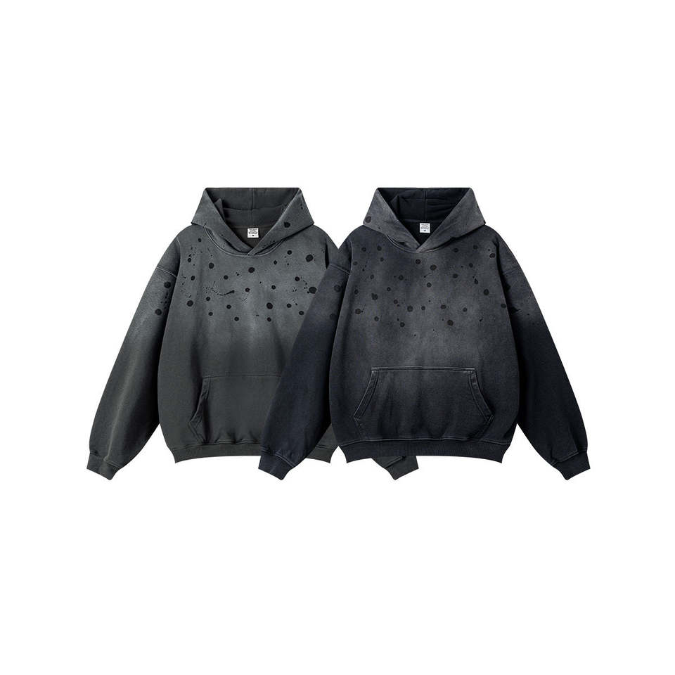 Sweat à capuche rétro pour hommes, en coton vierge, polaire, surdimensionné, imprimé brodé, délavé à l'acide
