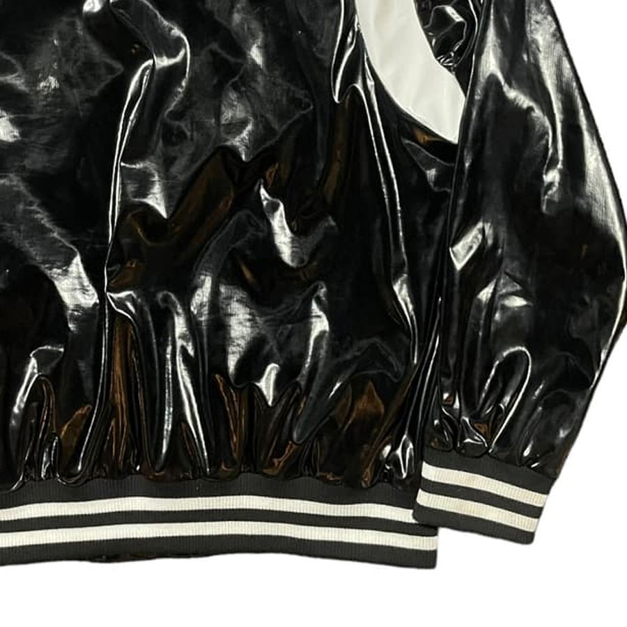 Veste de baseball rétro en cuir PVC pour homme avec col montant et logo sur le devant, couleur et logo personnalisables