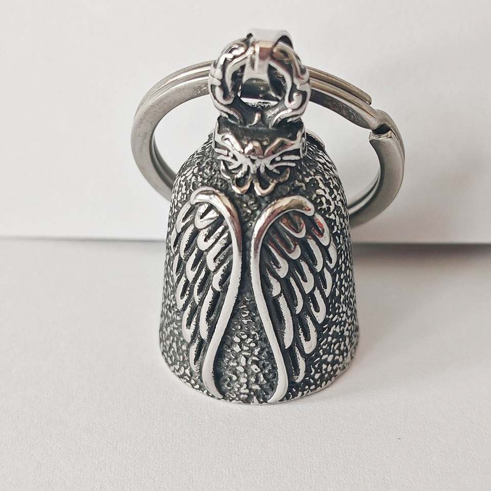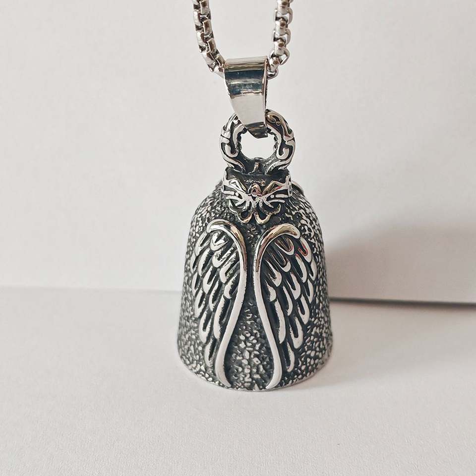 Collier Rétro Punk pour Homme avec Pendentif Ange Ailé et Clochette, Porte-clés Métallique Style Vintage, Bijoux pour le Commerce International