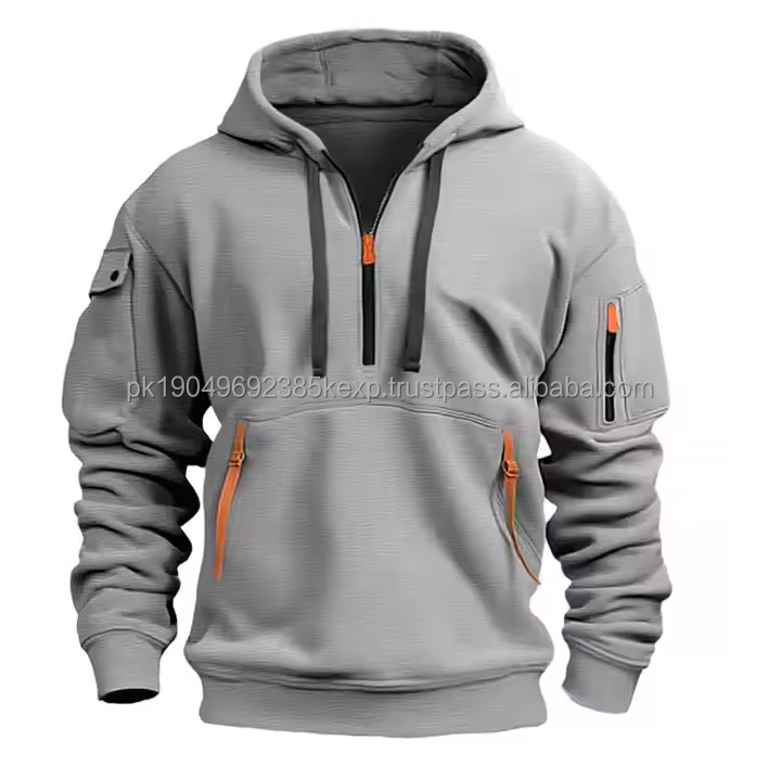 Sweat-shirt de travail rétro pour hommes veste pull multi-poches à fermeture éclair quart vêtements d'extérieur décontractés