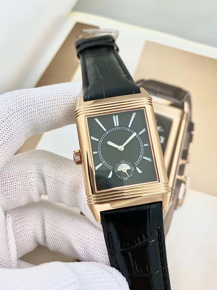 Montre mécanique de luxe pour homme avec bracelet en cuir, design rétro personnalisé, style Reverso