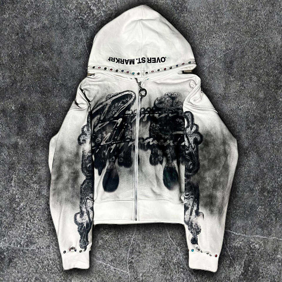 Blouson zippé à strass pour hommes et femmes, modèle 2026, blanc, court, scintillant, en cristal, style streetwear urbain HD